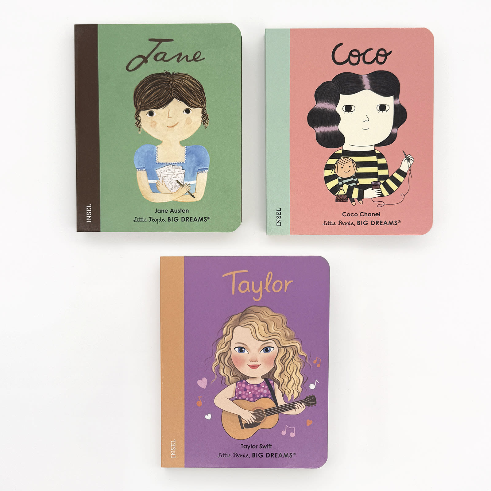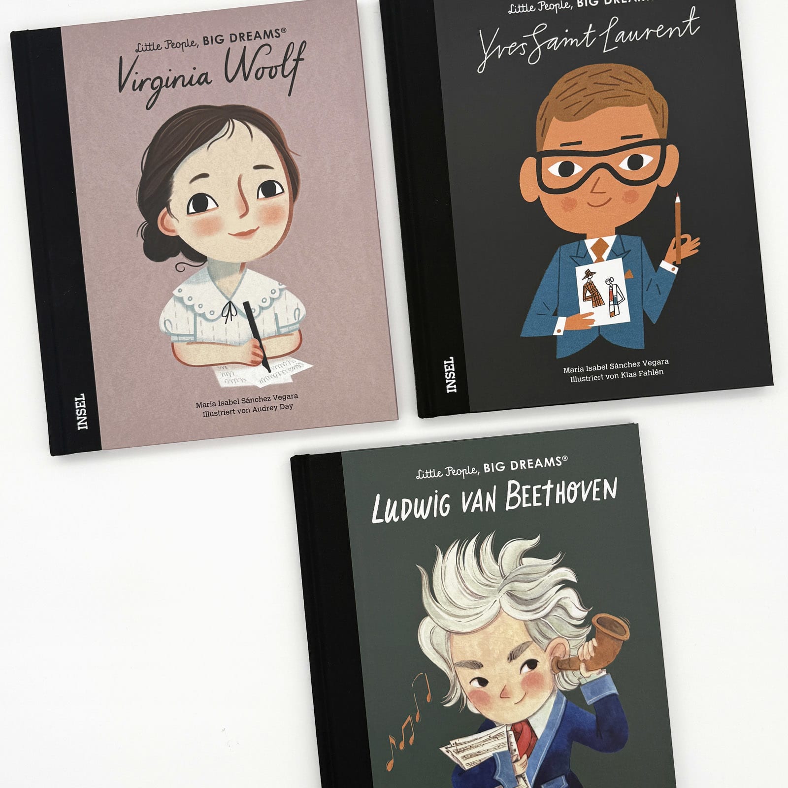 Sie haben die Wahl aus einem Buchpaket für Kinder ab 4 Jahren und einem für unsere kleinsten Little People, BIG DREAMS-Fans ab 12 Monaten mit Neuerscheinungen im Mini-Format. Neben unserem schönen Jane Austen-Beutel und den neuen Bänden, überraschen wir Sie mit spannenden Zusatzmaterialien zur Erfolgsserie von María Isabel Sánchez Vegara.