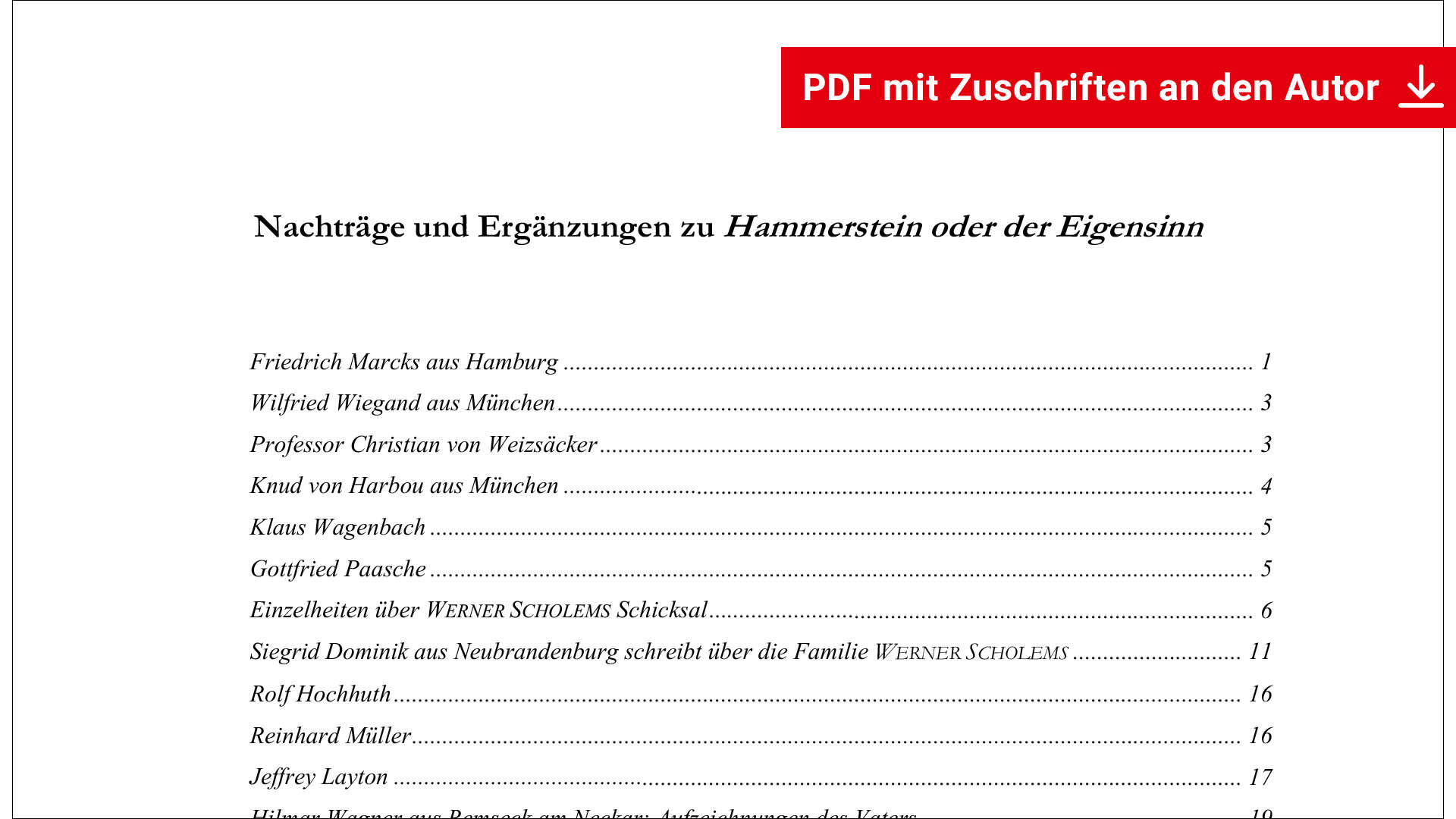 PDF mit Zuschriften an den Autor u.a. von Knud von Harbou, Rolf Hochhuth, Friedrich Marcks, Reinhard Müller, Gottfried Paasche, Professor Christian von Weizsäcker und Wilfried Wiegand.